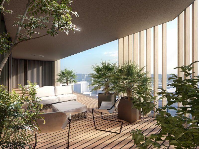 Les quatre façades de chaque bâtiment bénéficient d’une exposition à la lumière du jour dans toutes les orientations. Une belle lumière naturelle se diffuse sur les terrasses et espaces intérieurs tout au long de la journée.
