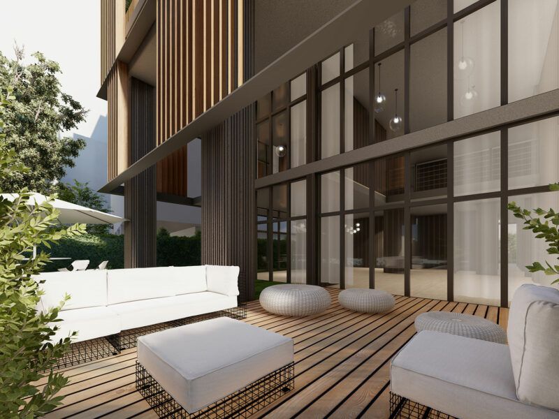 Les hauteurs sous plafond variant de 3 à 3,5 mètres, ainsi que les grandes terrasses, assurent une lumière du jour abondante et une ventilation naturelle tout au long de l’année. Une végétation verticale est également prévue, afin de réduire l’empreinte carbone et de rafraîchir l’espace. Enfin, des paravents permettent de filtrer la lumière naturelle tout en protégeant les appartements des vis-à-vis.